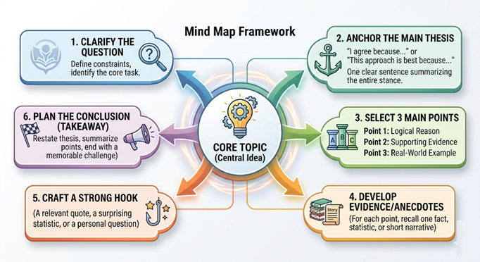 Ans: Use the “Cue Card” method. Write down one keyword per main point. Your brain will naturally fill in the sentences around that keyword, making you sound more authentic and less robotic.